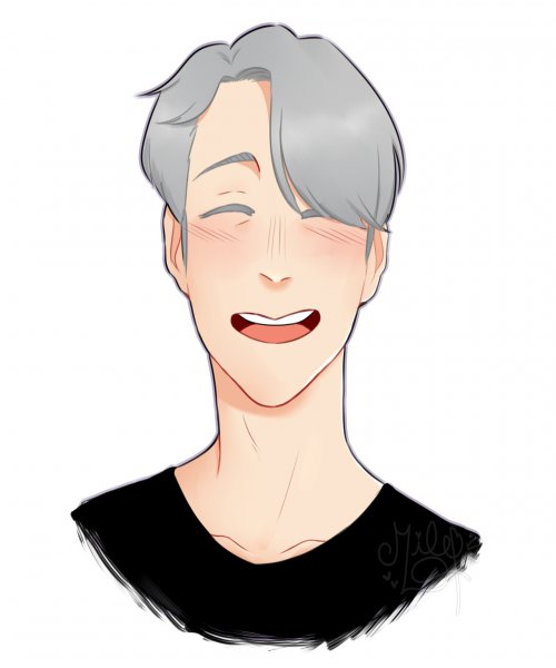 Yuuri raised his head once more, feeling his breath catch in his throat as his eyes locked with ones the colour of the ocean. Staring back at him was what had to be the most beautiful man Yuuri had ever seen, smiling warmly at him with his beautiful, beautiful eyes. The stranger’s hair was a striking shade of silver, bangs hiding a small part of his face that was just as beautiful.
