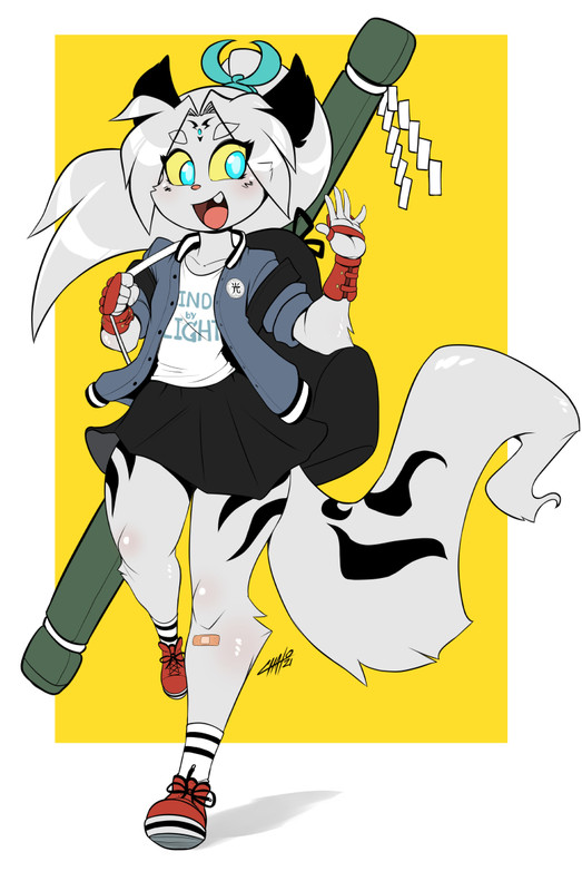 She was a little bit taller than I was, flowing straight red hair descending down to her lower back, her light-brown fur contrasted by a small circular patch around her left eye. Both were half-closed, yet I could see the light shade of blue both were off. She was wearing a classic black Chinese dress that offered an opening to her cleavage and that showed a bit of her legs, covered by long-white legwear.