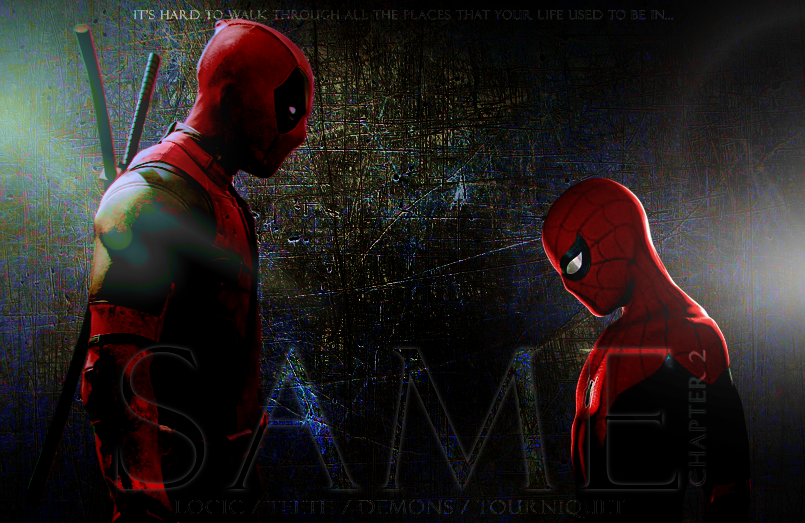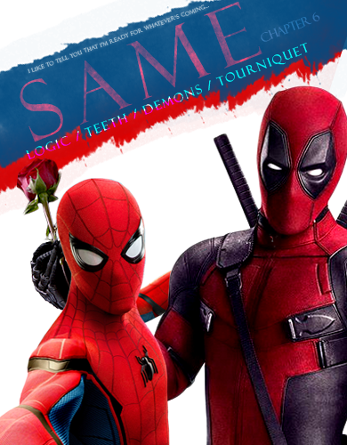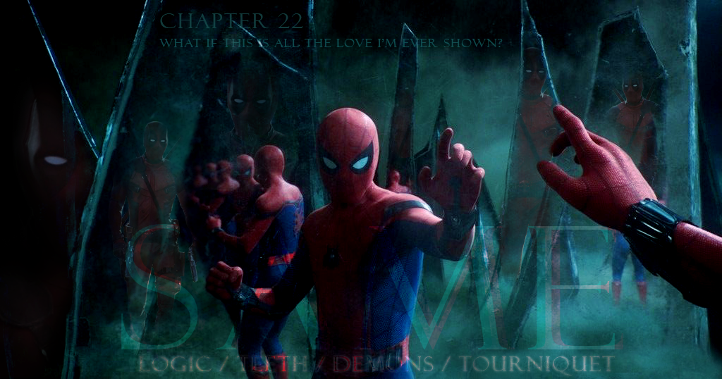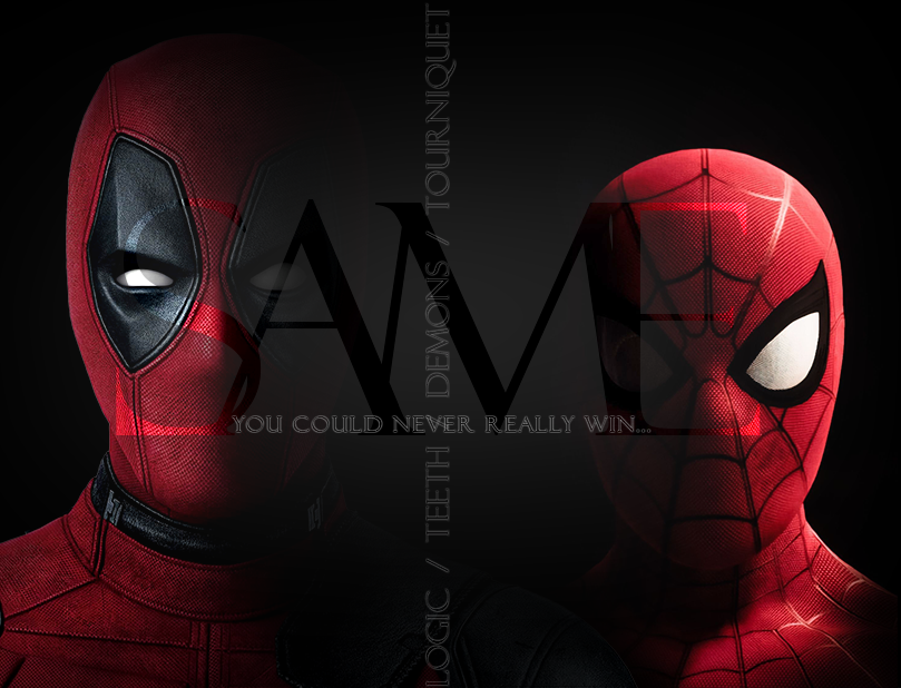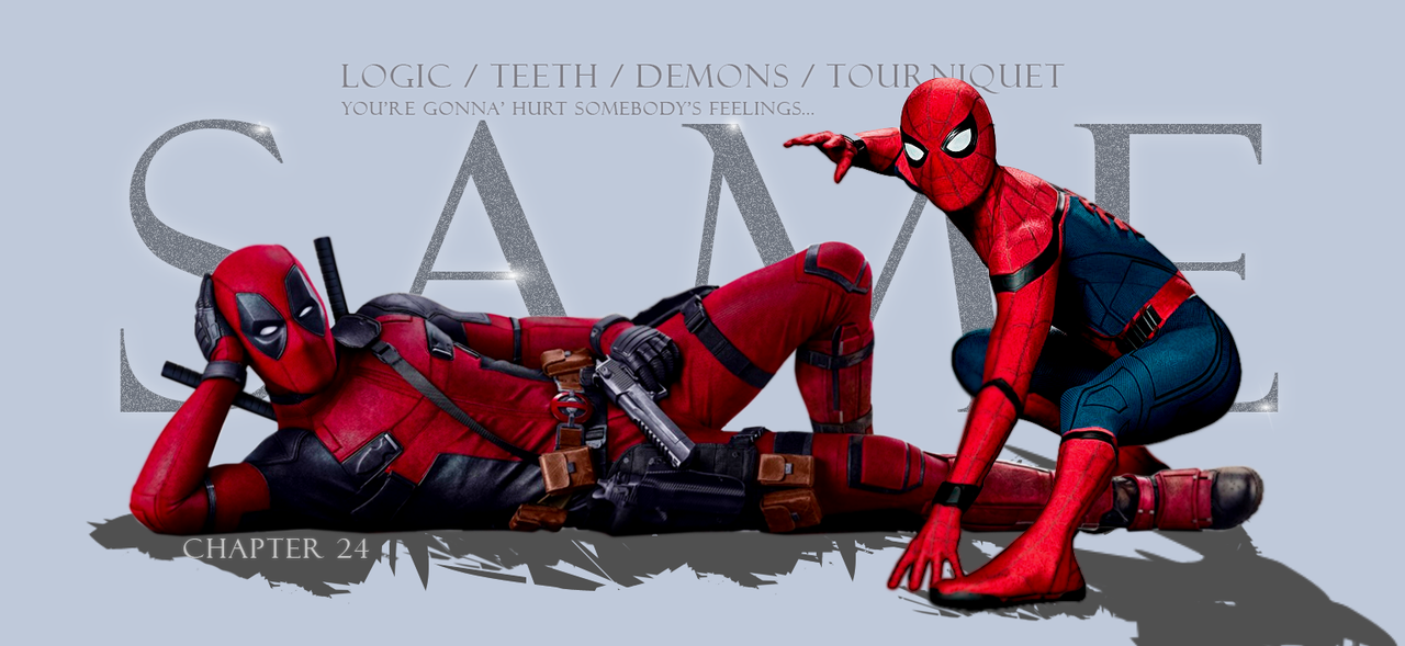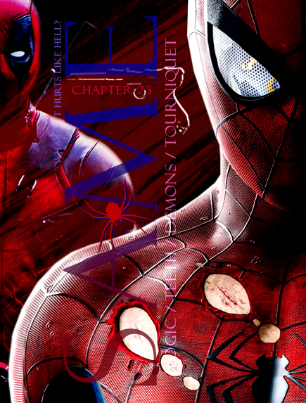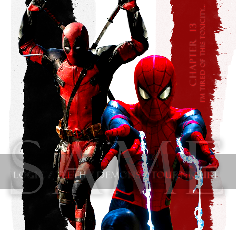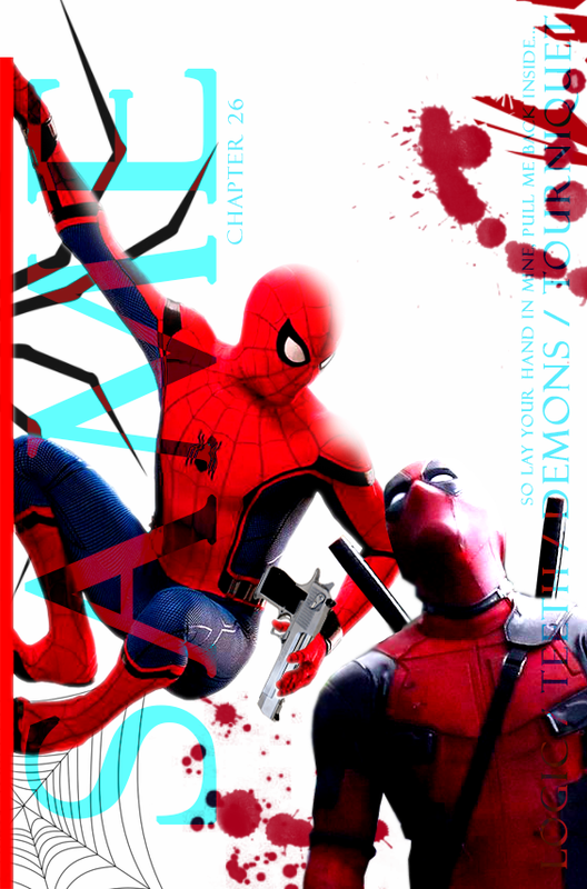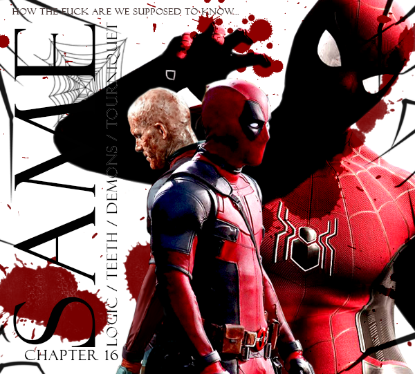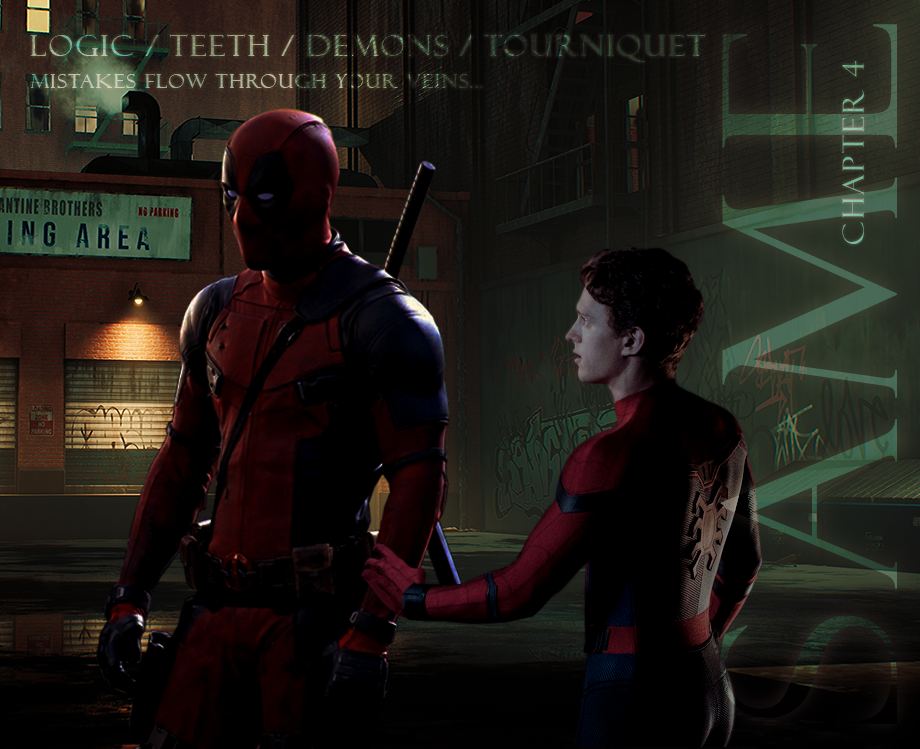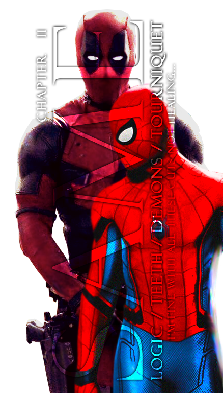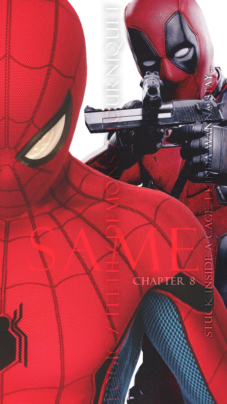 "Put your mask on, Spidey." Peter stopped all movement in confusion of the instruction and he didn't even register the need to react as Deadpool approached him, walking right up to stand just a foot away,