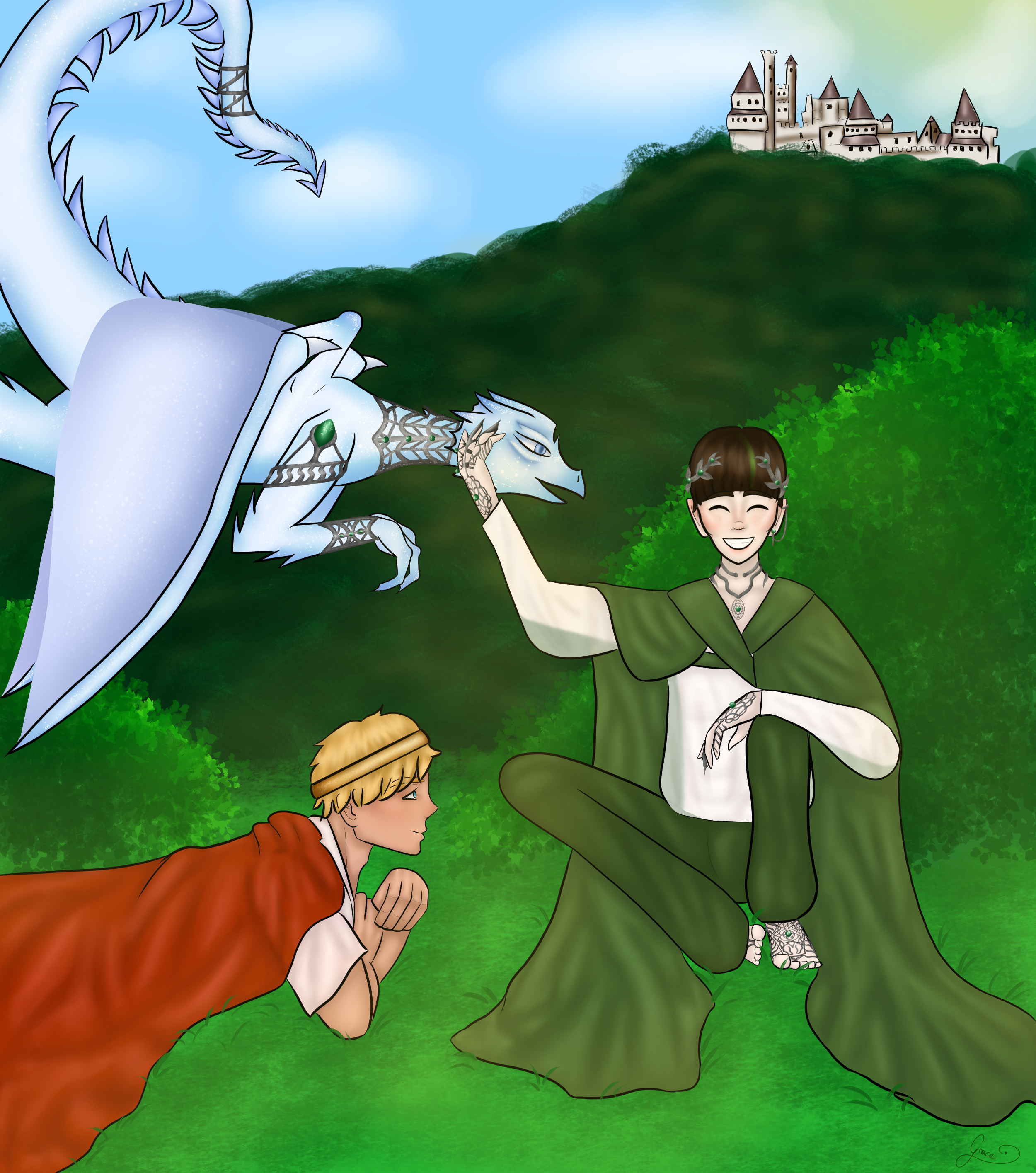 King Arthur Pendragon of Camelot meets Prince Emrys, the Lord of Magic and Dragonlord, secretly. Aithusa is there too.