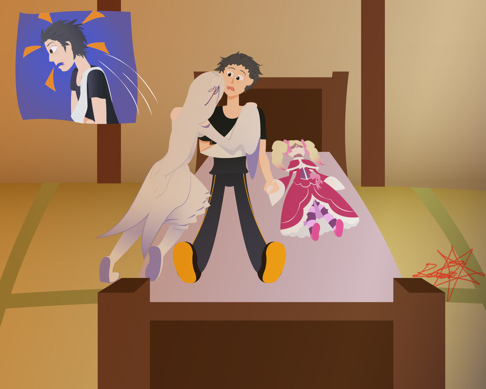 Before Subaru could ask what was going on, Emilia had gripped both Beatrice and Subaru in a tight hug. He had to admit, he loved moments like these. But this. . . it didn't feel right. Subaru liked sharing heartfelt moments with them, not causing them pain. This 'white flash' had just forced Emilia and Beatrice into his arms. The suffering these two were under was apparent to anyone. It was unforgivable. Hurting the two of them this much.