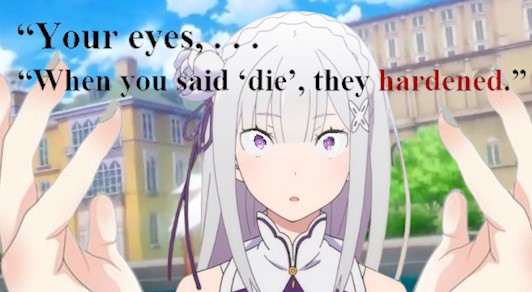 "Emilia-tan!? You stopped mid-sentence. . . please. . .no. . ."