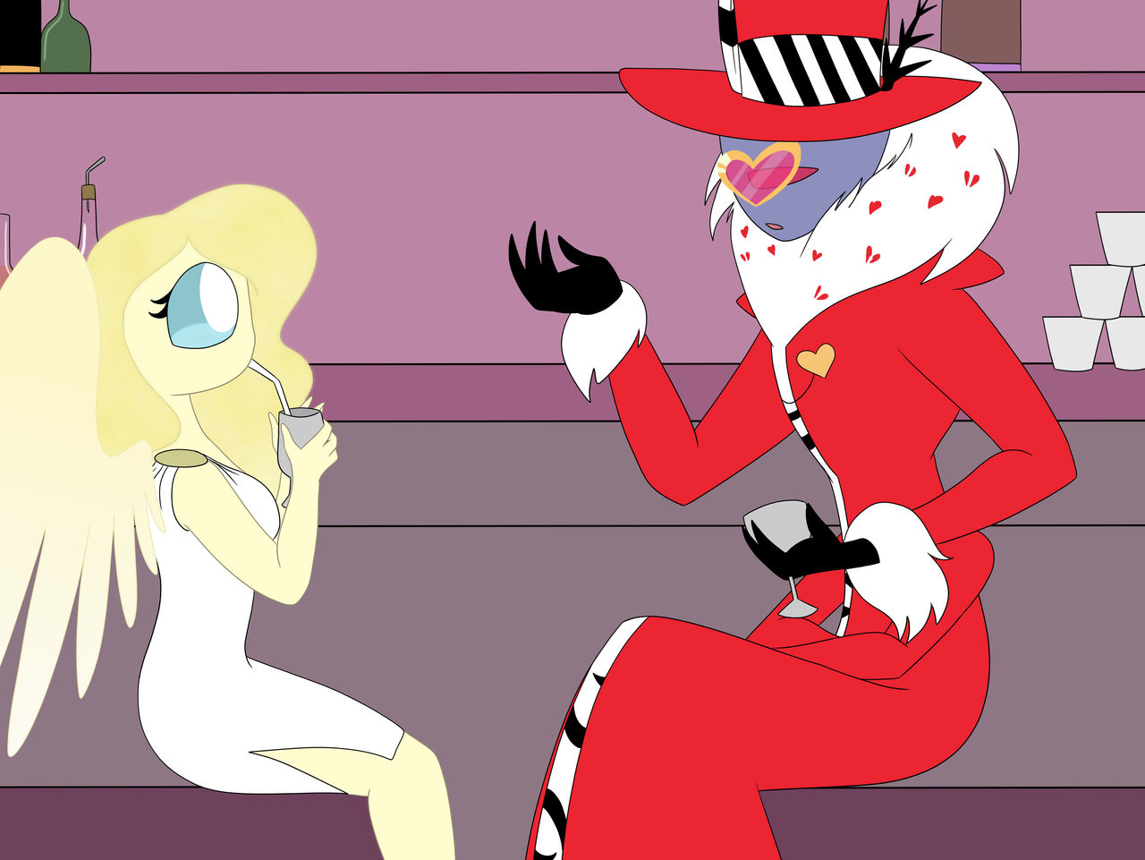 "Shut the FUCK up, you Ángelita Idiota! Because of you I lost the only bartender who knows how to make a damn good cocktail!" he growled in annoyance while glaring at the freshly electrocuted angel, "Caught the Little Fucker trying to rig your waiting list."