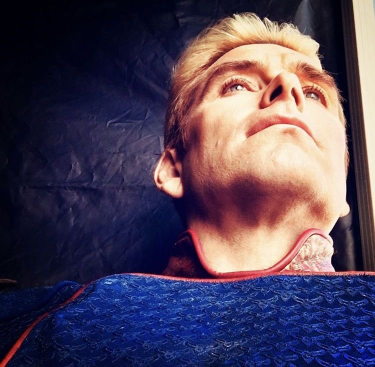 「傻孩子,你沒做錯什麼,你跟我一樣完美。這只是一個考驗而已,你做得很好。」Homelander俯下身撫摸他長子漲紅了的英俊臉龐。Homelander稍為向下垂的上眼皮加上濕透的睫毛和藍眼,令他看起來像個無辜又無邪的金髮天使。然後這個無邪的天使貼着他的耳朵說出最動聽的話:「乖孩子,現在射進來吧。」