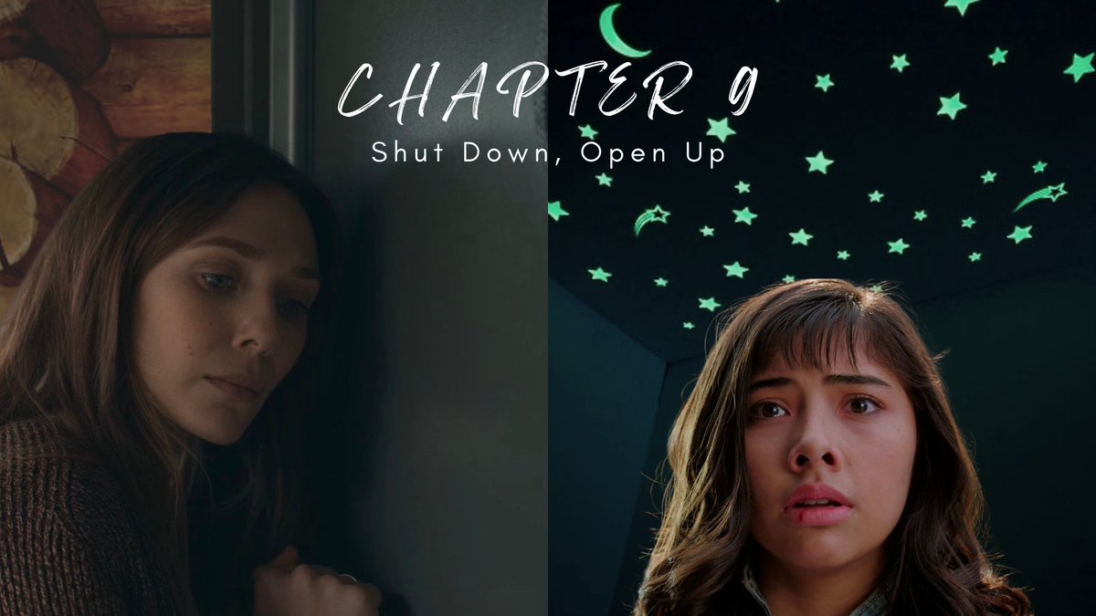 America glances up to see Wanda tentatively stepping forward again, arms wrapped around herself. This time, America doesn’t flinch away. Instead, she just mirrors her posture, arms protectively folding around her own body.