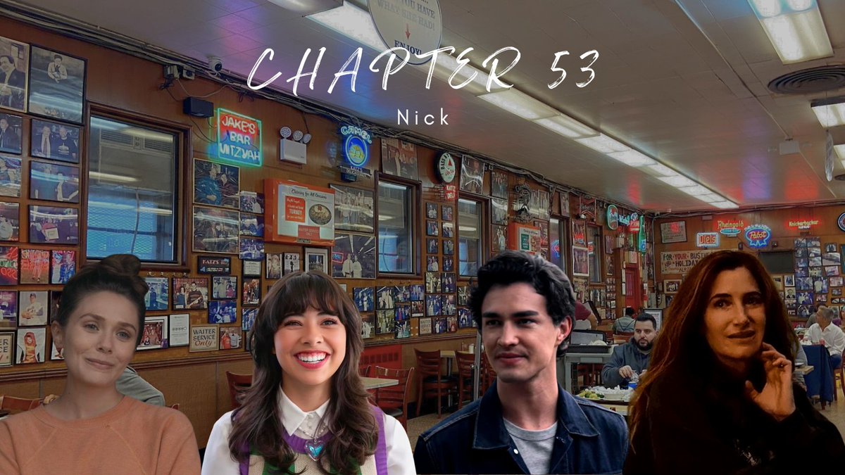 Wanda frowns, absentmindedly tapping her side where one arm is still crossed. “I understand what you mean, and maybe a part of how you feel…it doesn’t go away, the grief, but it gets easier — at least that’s what they say. You may have done something to cause your moms to multiverse travel, but you had no intention to do so,” she says gently. “I— I would have taken something else from them that I know is very precious.”