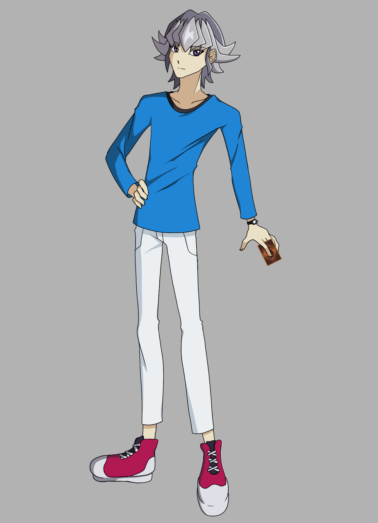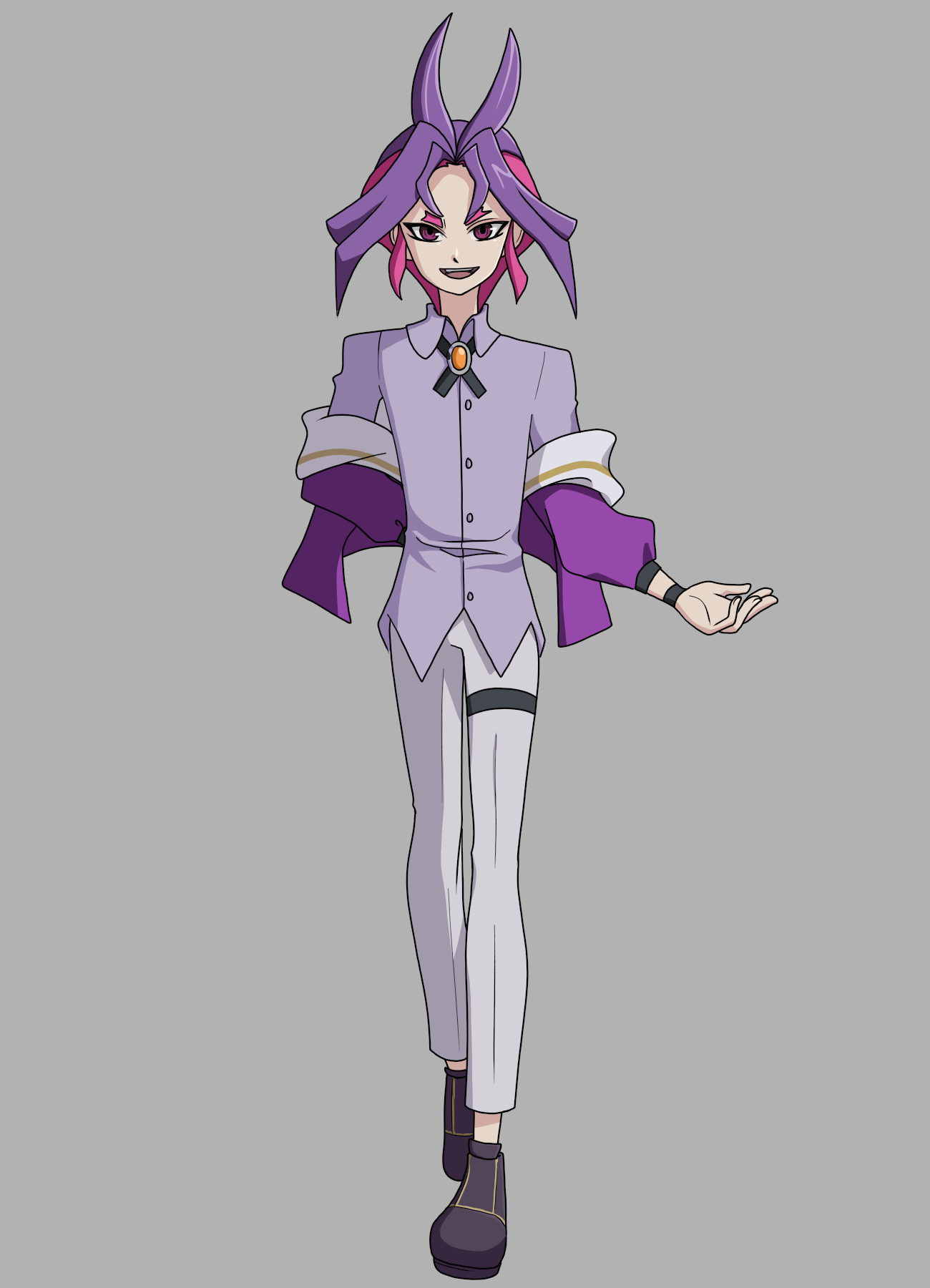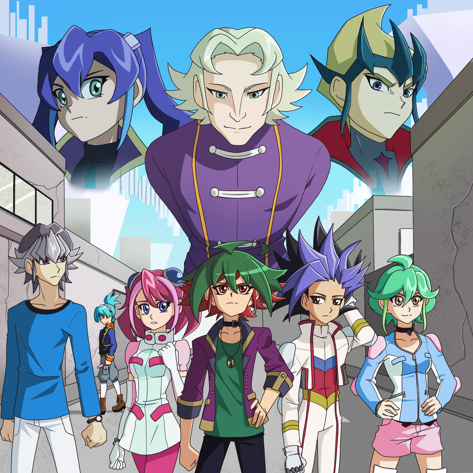Yuya était fasciné, il avait l'impression qu'il lui parlait directement. Il fut ramené à la réalité lorsqu'il entendit la porte de sa chambre s'ouvrir. Paniqué, il éteignit la télévision avant de lâcher maladroitement la télécommande et il se retourna vers l'entrée. Il fut immédiatement déçu : ce n'était pas sa mère, mais un jeune garçon d'à peu près son âge, peut-être un peu plus âgé. Il était habillé comme un adulte et avait des cheveux violets bien coiffés.