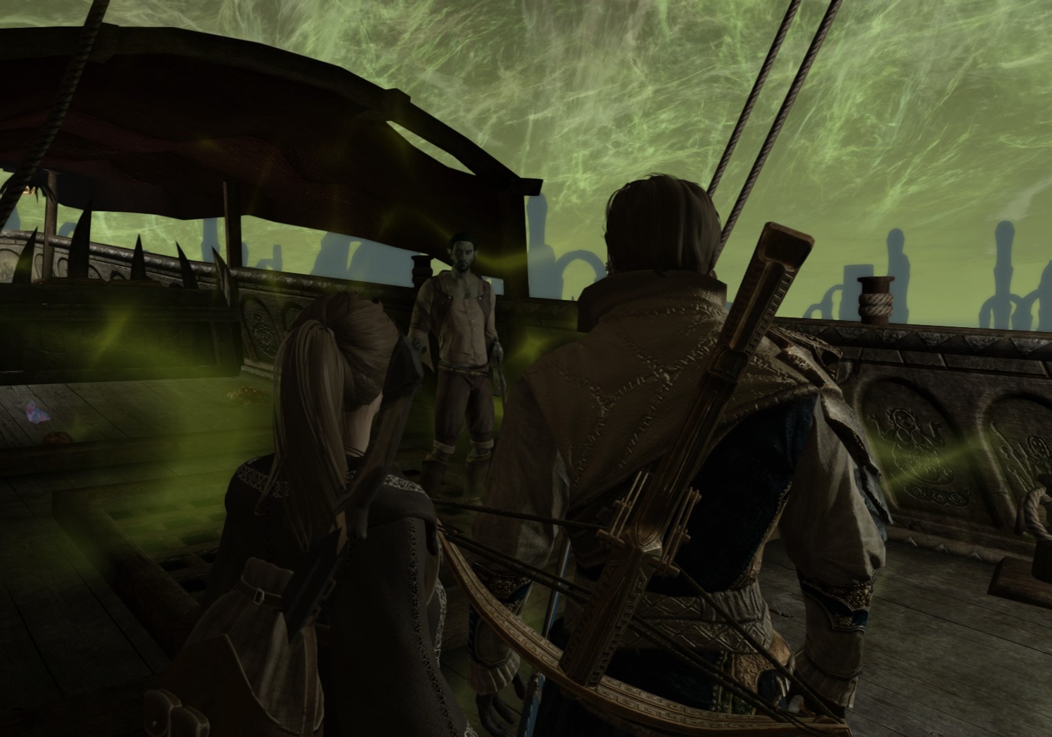 Aelyn finds the Captain of the Dark Rose, and offers him a job.