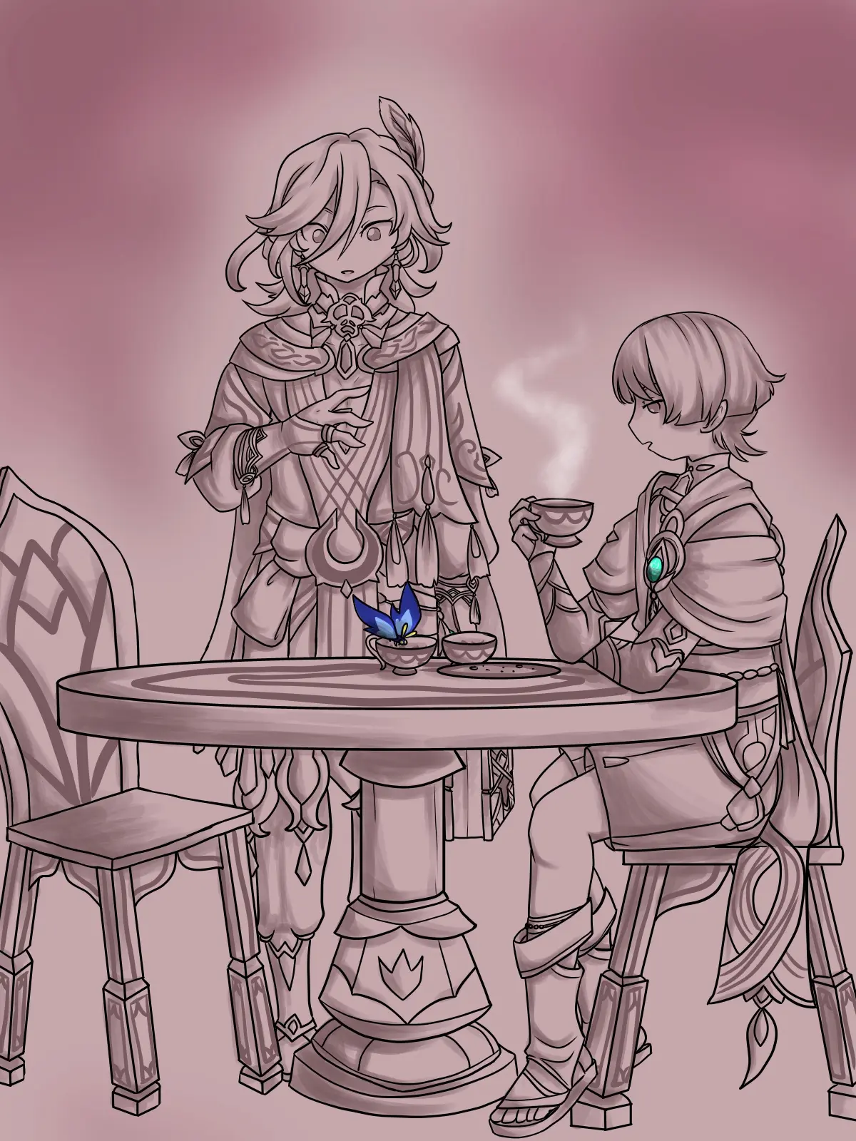Alhaitham, in the meantime, just sighed and adjusted his noise cancelling as the conversation volume in the tavern rose around them. “You say that, and yet I was the one who did most of the translating. With the Traveler’s track record, it’s only a matter of time before you start getting commissions from Fontaine or maybe even Natlan.”