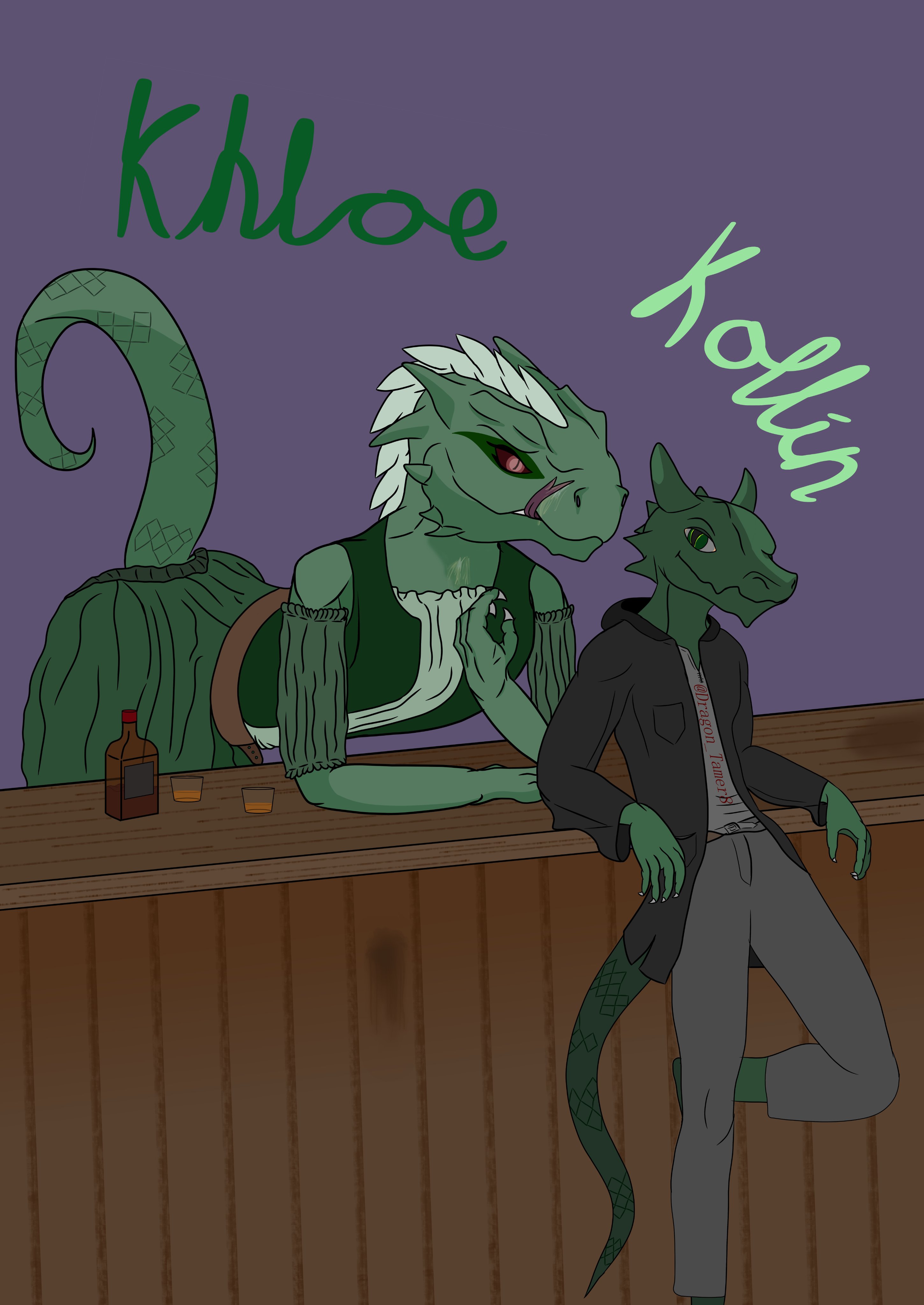 Reluctantly, Rex got up, grumbling under his breath, and stomped over to the bar counter. Ingrates. I should be sitting on the throne of my ancestors... instead, I'm cast out, forced to beg for aid… Gods, what did I do to deserve this?? The Great Rex Brimstone, reduced to running and hiding-