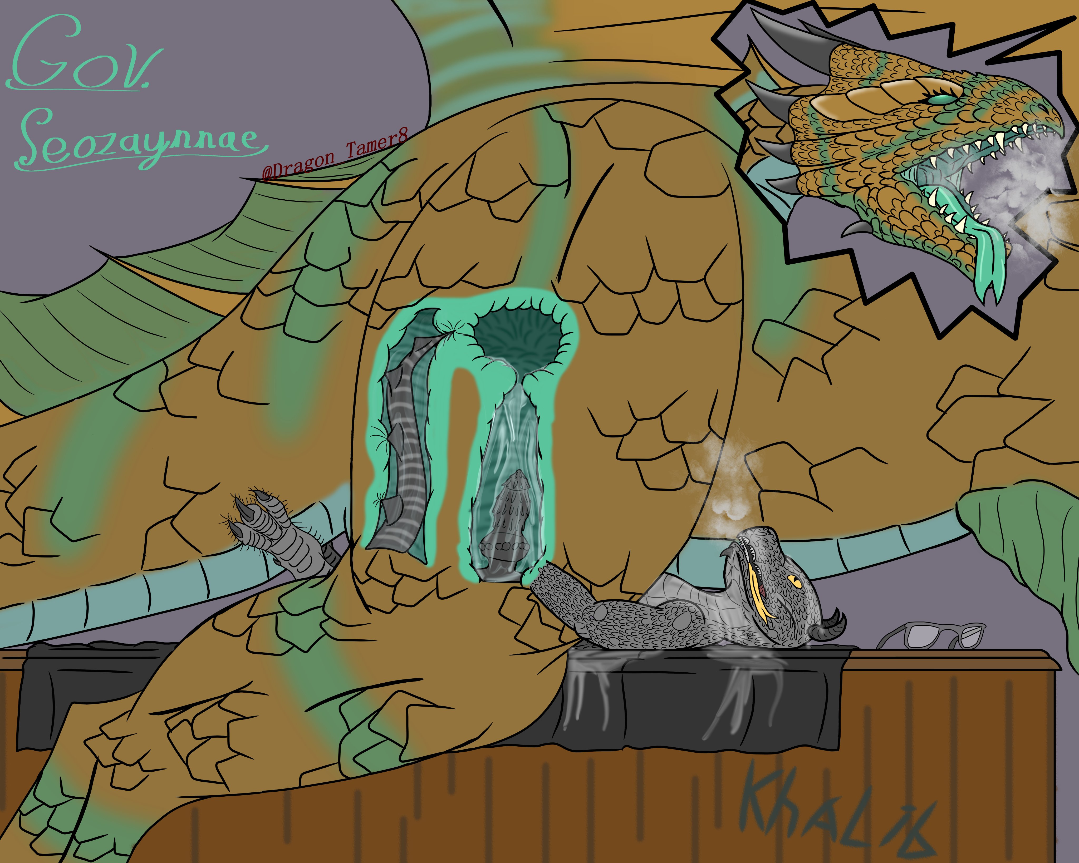 Hordan growled, “Winning by submissions are worthless- the only way to finish a fight is through KNOCKOUT, or something more permanent. What a pathetic little shit!” He couldn’t stand inconclusive wins, whether he was watching fights or participating in them himself. And that little bull getting carried off by his maid- girlfriend- whatever that green dragoness is. It’s a disgrace to the reputation of minotaurs! We’re supposed to be the STRONGEST!