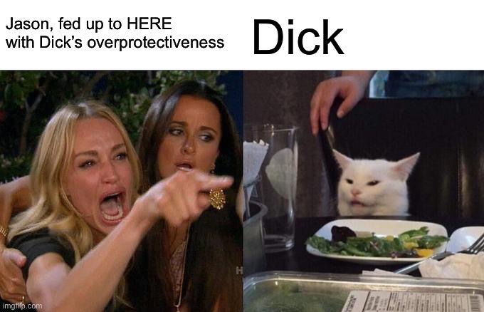 Every. Damn. Day. It was so irritating. Jason literally spent three years by himself after losing his parents, three years before Bruce came along and randomly decided to feed him. But Dick always acted like he was helpless, like he couldn’t even hunt right.