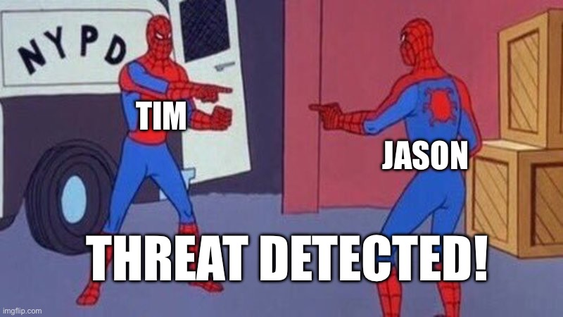 “What’re you doin’?” Jason squinted as Tim disappeared.