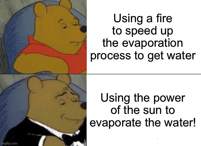 “Look, I’ll worry about how to boil the water LATER. First I have to see if I have the stuff to do the boiling part. Also fish. I need a spear or something so I can try and stab a fish.” Tim nodded.