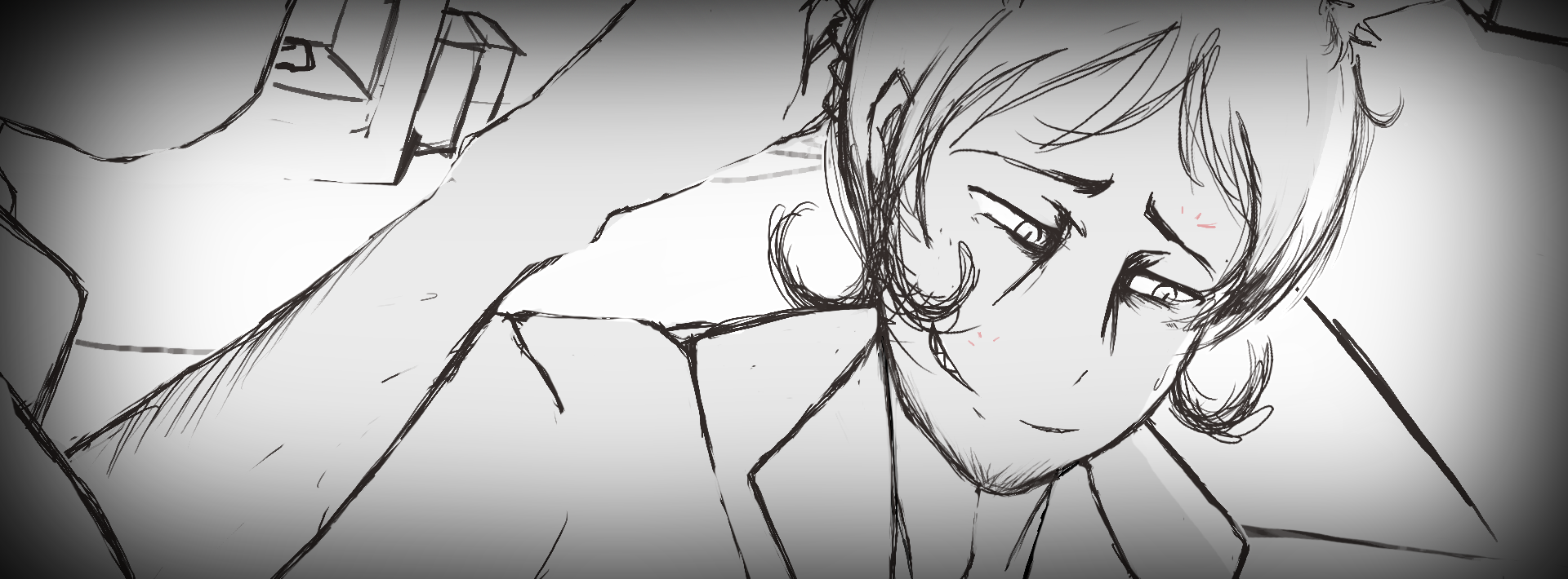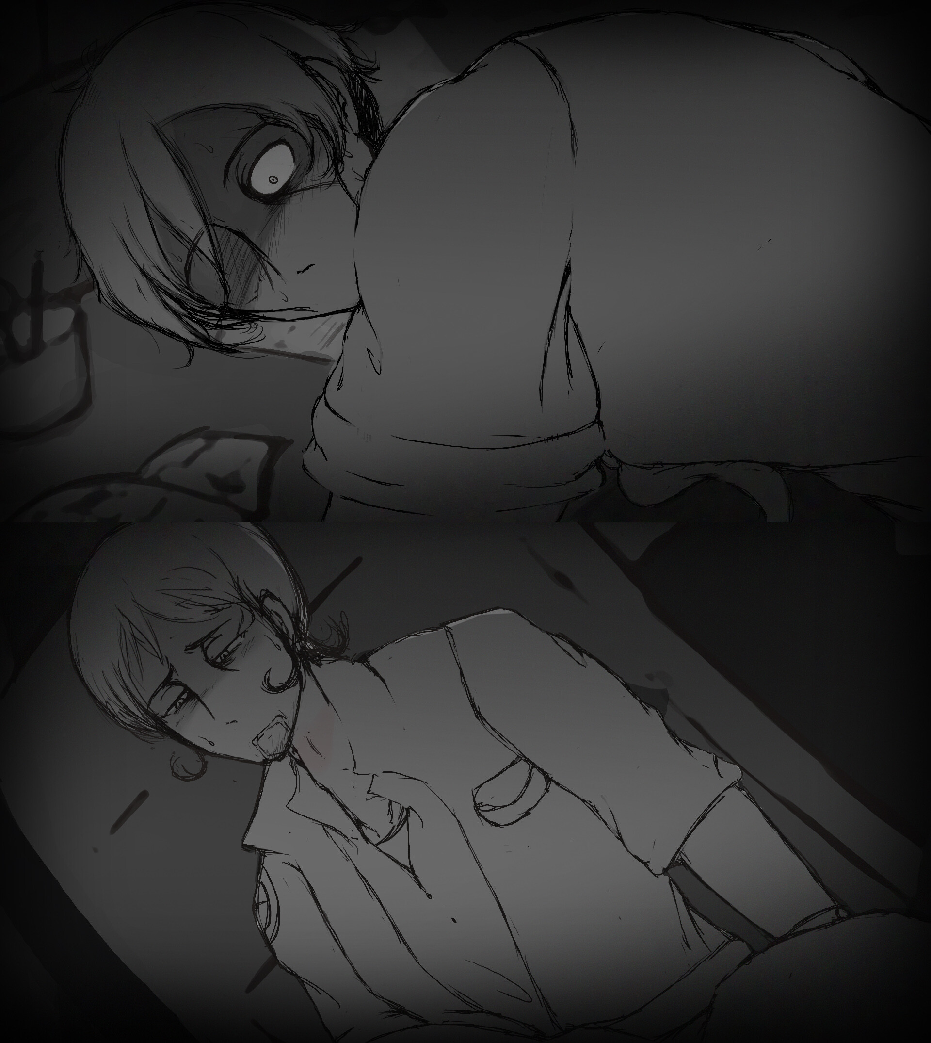 A small curse escaped my lips, feeling utterly useless—why did I even listen to such a stupid suggestion?! My complaints were quick to end as I heard another noise of shoes approaching my way, panic rising and my heart pumping the more the noise grew. What strength I held went into holding my bonesaw, having to just sit there and wait for the person to approach ever closer.