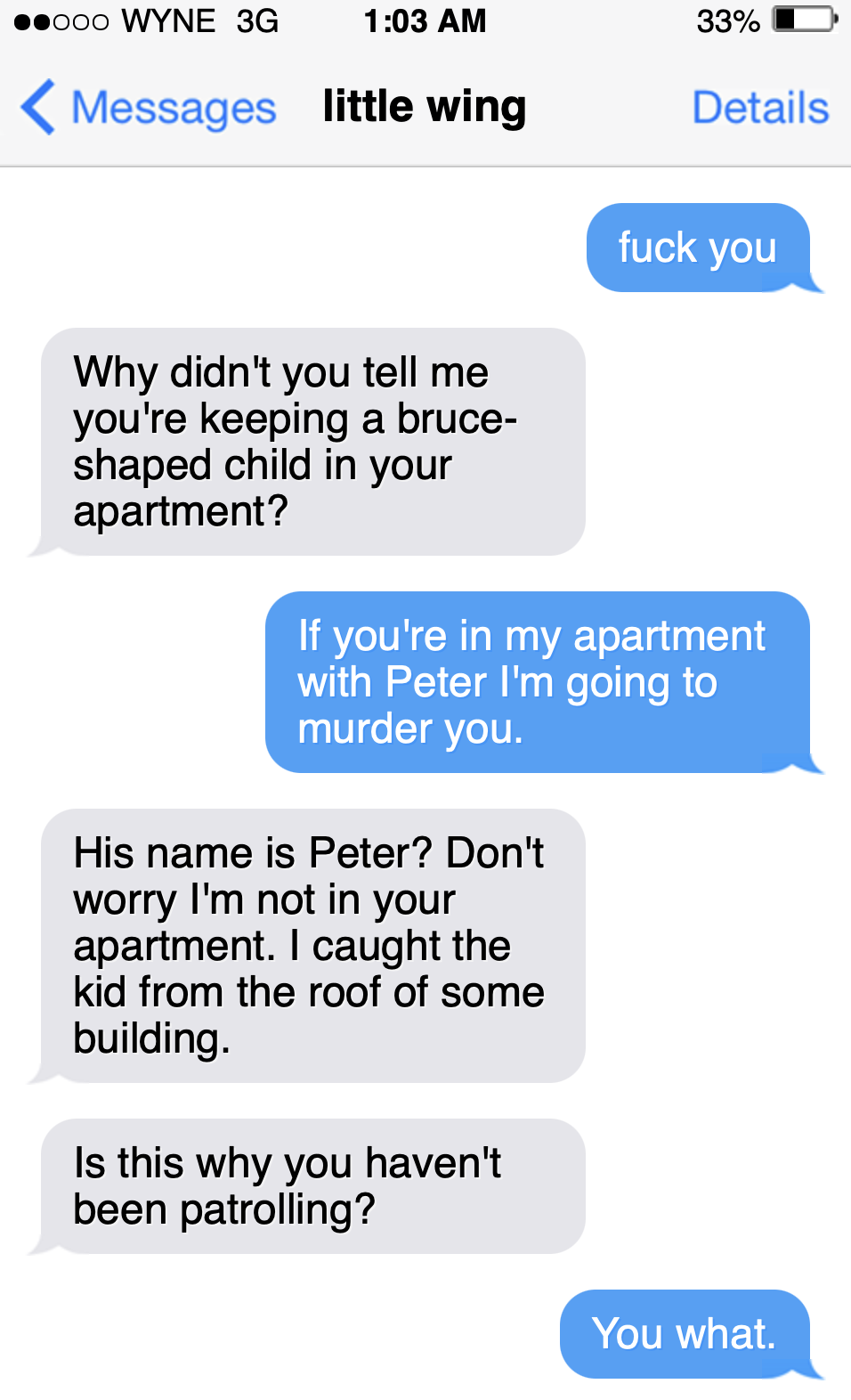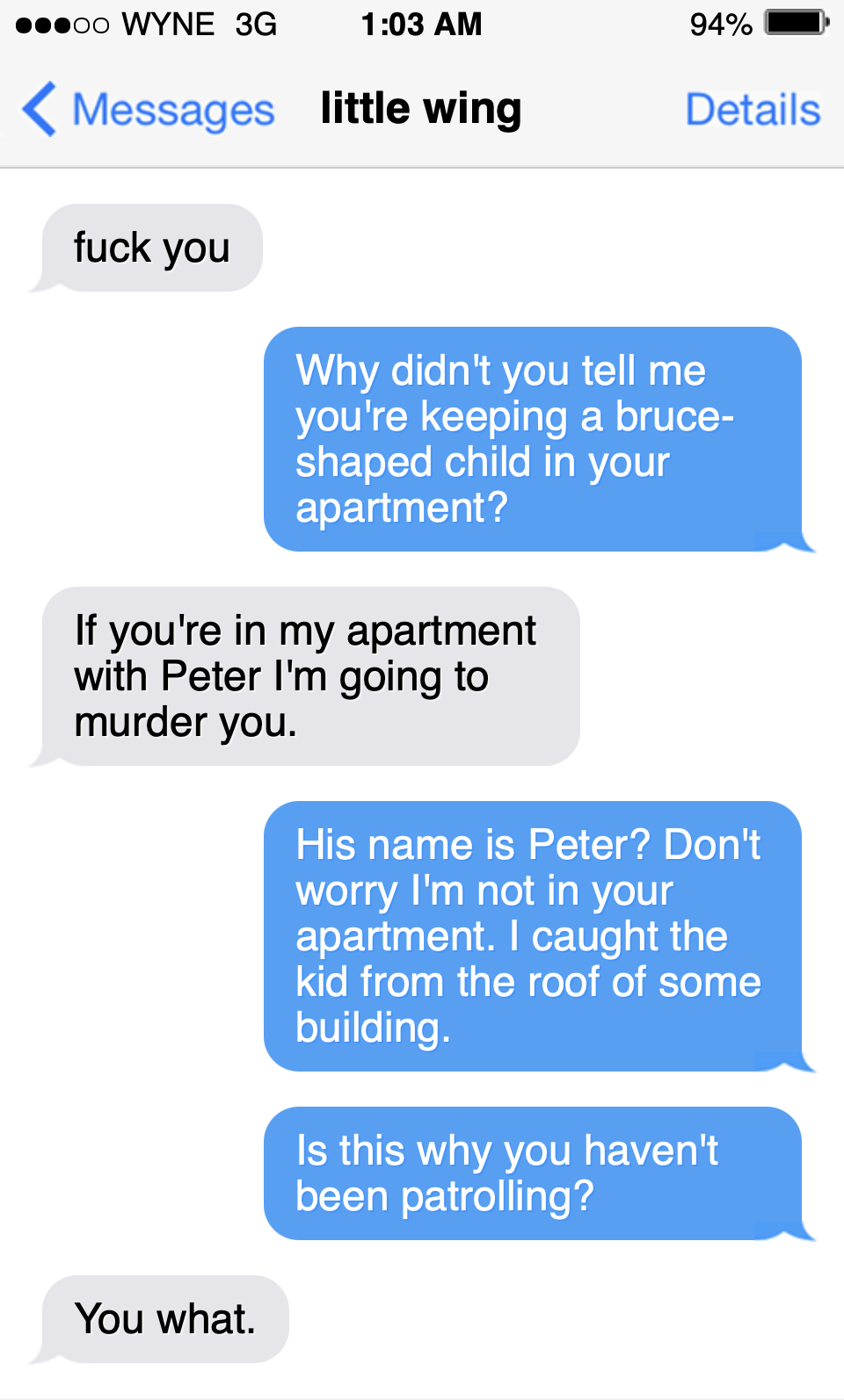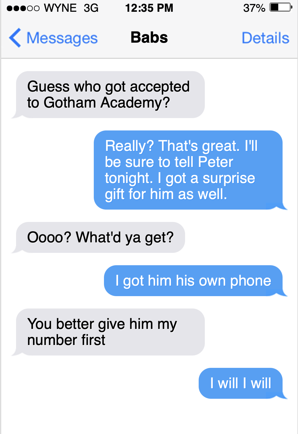 “Of course not! It’s your business, why would I be mad?” Peter seemed genuinely confused. What Jason didn’t know is that Peter understood him better than anyone on the subject of secret identities.