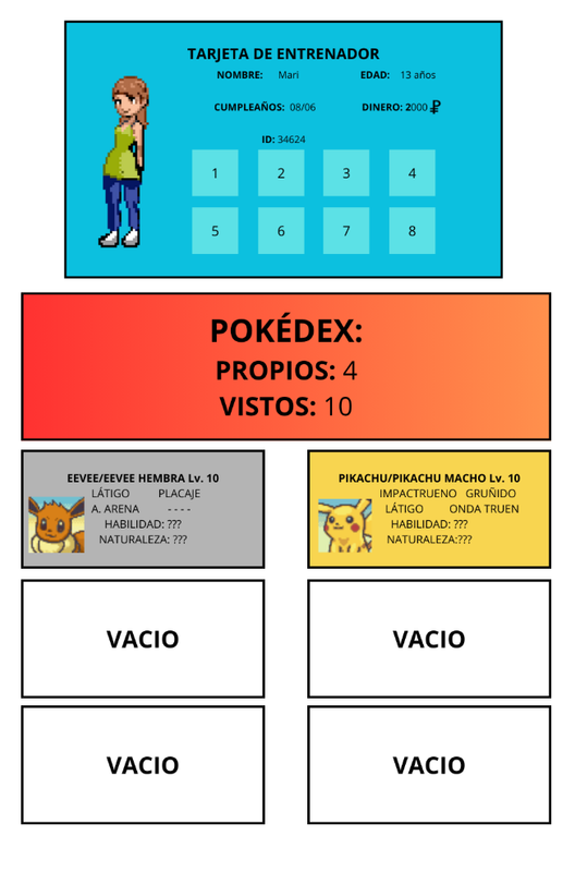 - Bueno, mi tardanza fue producida porque - el profesor Oak es muy puntual, NUNCA llega tarde, pero lo raro es que faltara - se me perdieron los Pokémon (.7) que os iba a dar, suerte que tú primo ha atrapado un Pikachu, pero el resto de entrenadores no tiene Pokémon a nivel suficientes, he analizado a Eevee y está al nivel 5 (.8), el perfecto para inicial, así que tú decides, Mari, Eevee o Pikachu