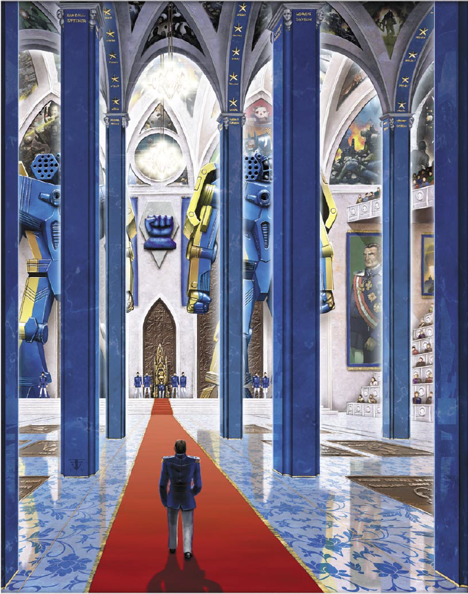 “Lass ihn gehen, du Schweinehund!” She managed to scream, and the armored figure seemed to turn towards her. The machine gun on its arm leveled at her friend’s back, and he tried to struggle free of the clamp around his arm.