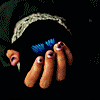 He removed his hands from his pockets. In his ruined hand he held a knife that he used to slice the palm on his other.