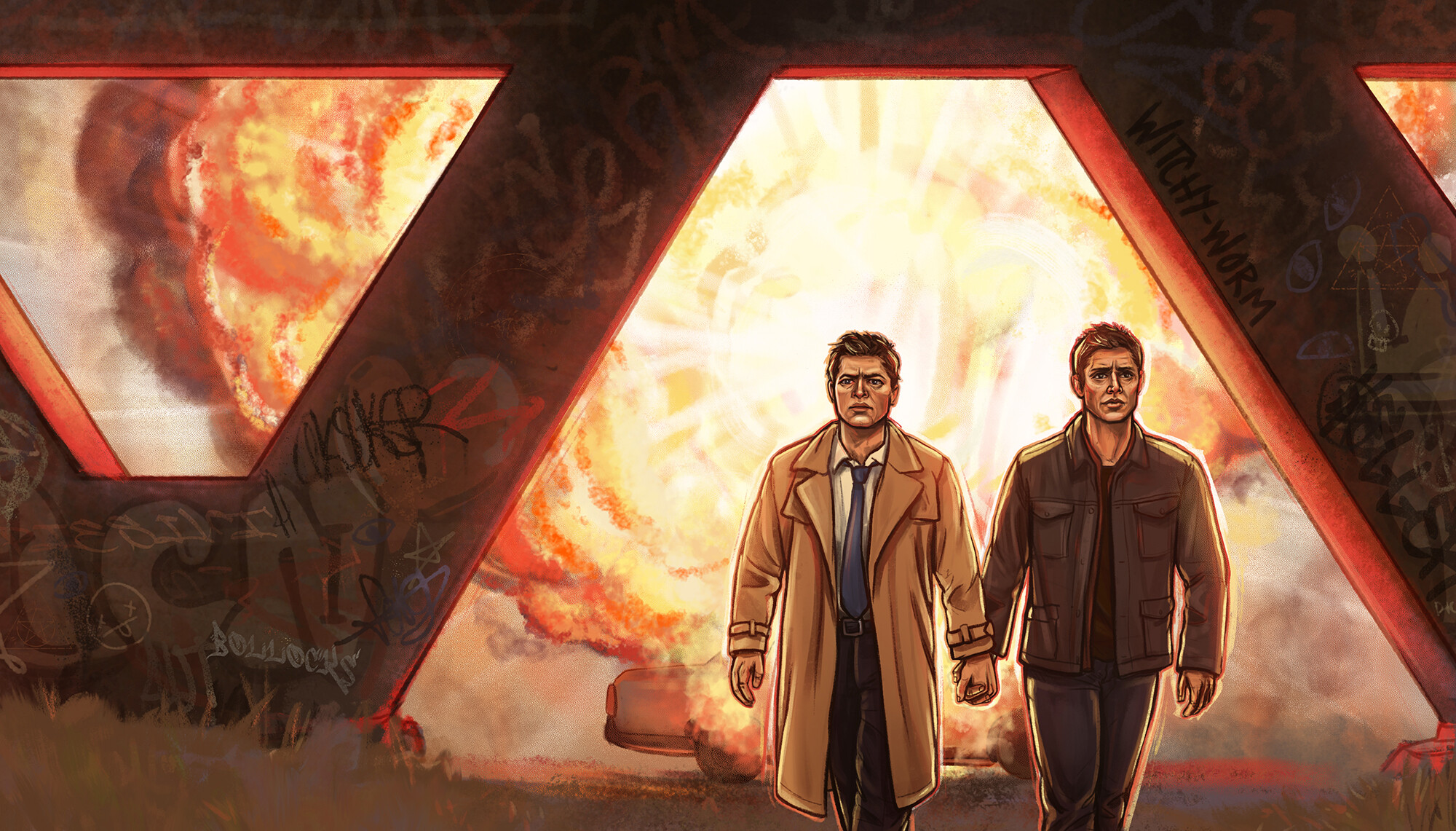 “Same,” Sam says as he helps Dean to his feet to pull him into a hug.