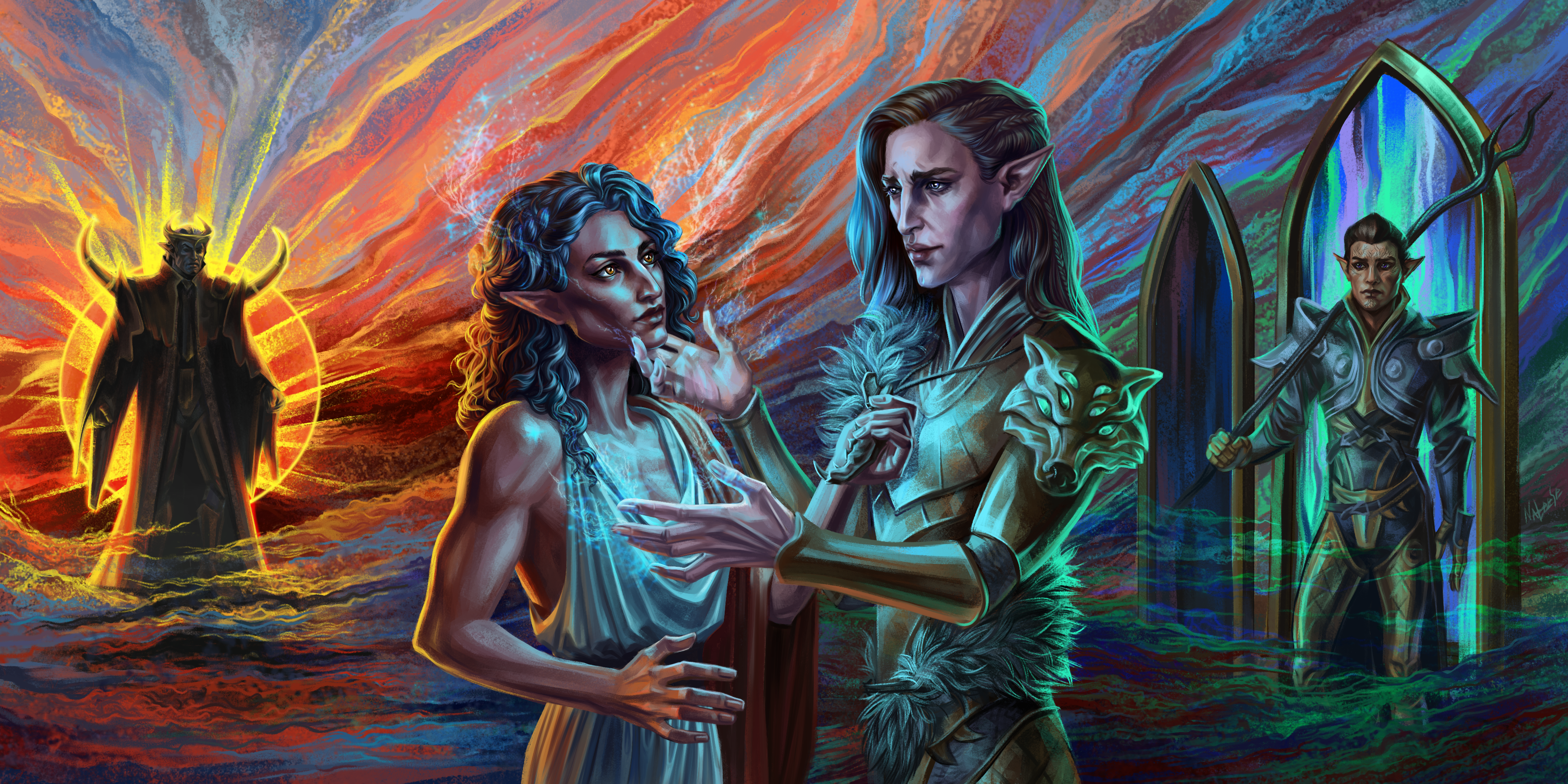 The darkness parted, and it was, for one blissful moment, as if the Woods never existed. Straight line of sight of the Crossroads, Solas and Felassan in the heat of battle, as Elgar’nan circled them. The end was near. Converged City had fallen, the black smoke rolling over the horizon.